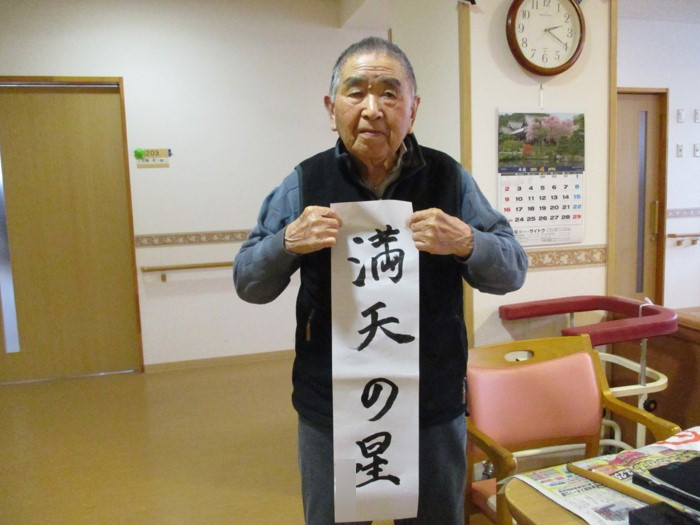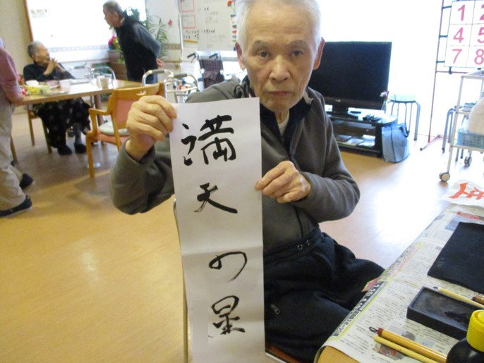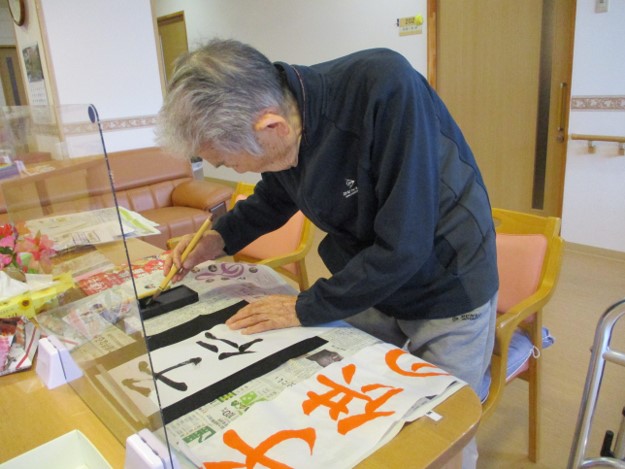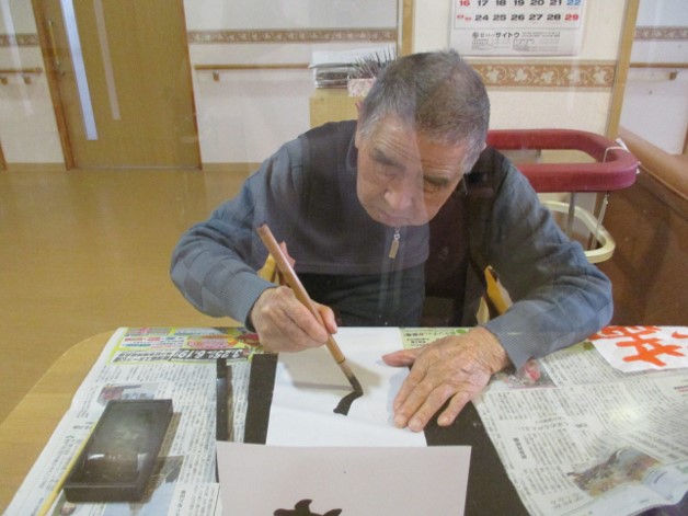 出来上がった作品をお互いに見ながら、「ここが上手に書けているね」「はね・とめ・はらいがチャンとしている」と談笑されていました。