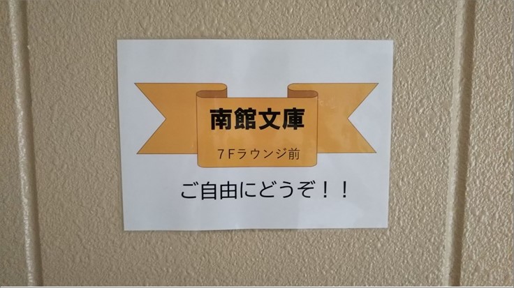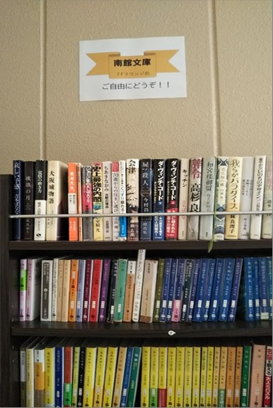 当館7Fラウンジ前には、南館文庫と称しまして本棚が並んでます。