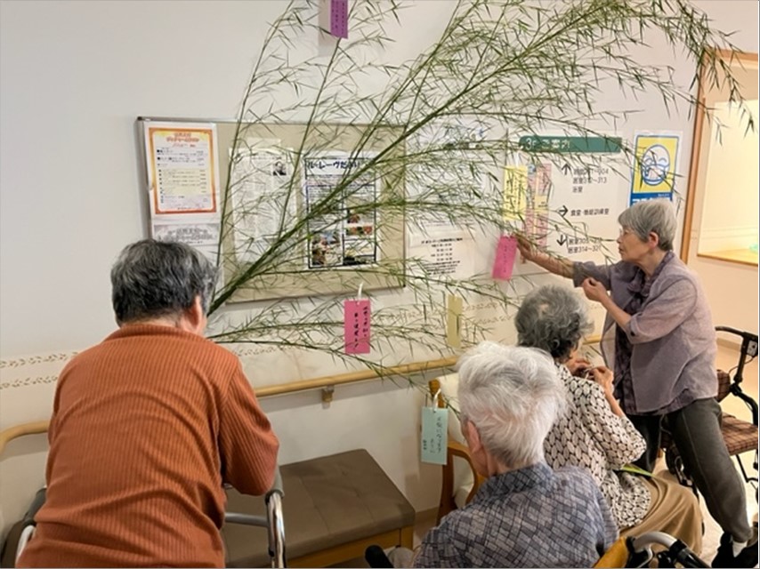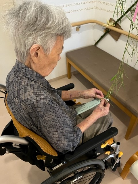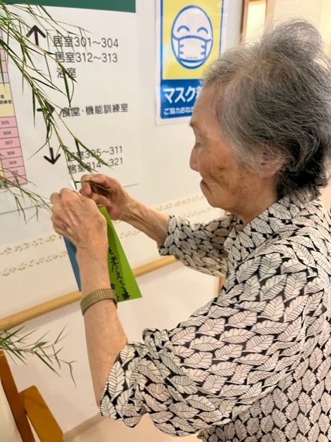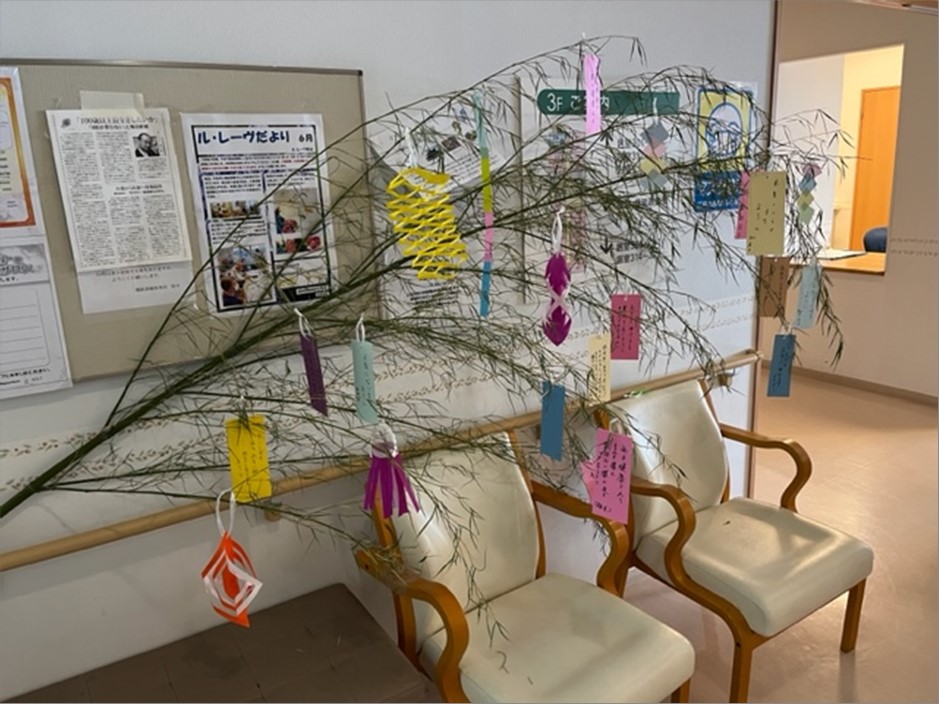 『ル・レーヴ狭山』では笹に飾りをつけ、短冊に願い事を書いてもらいました。