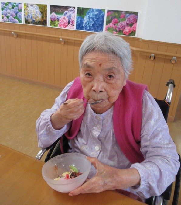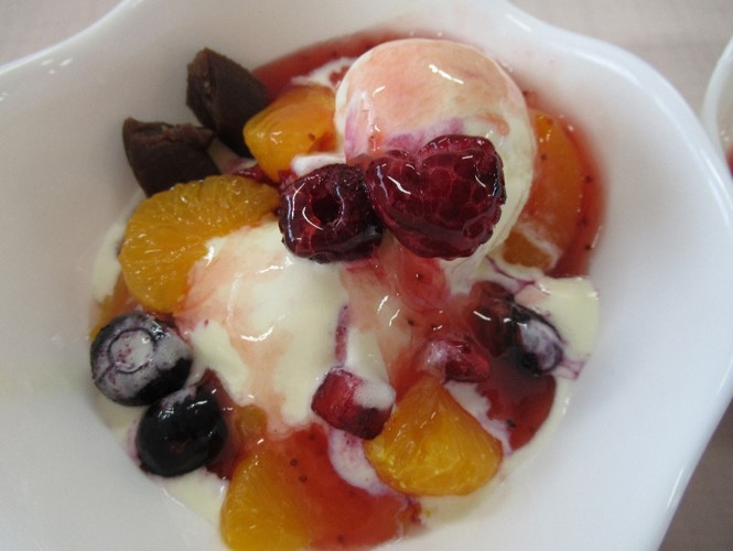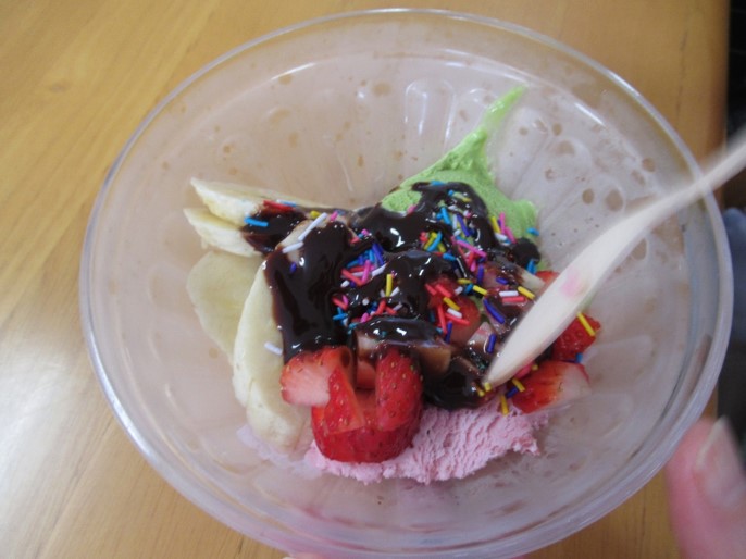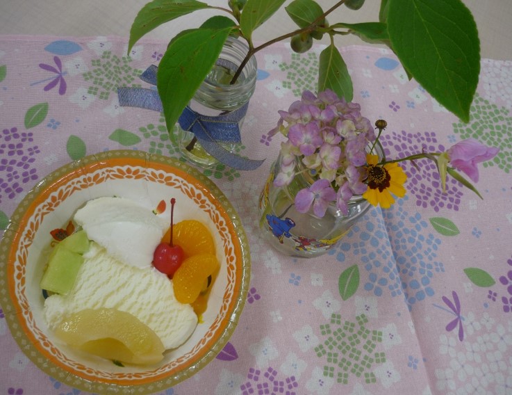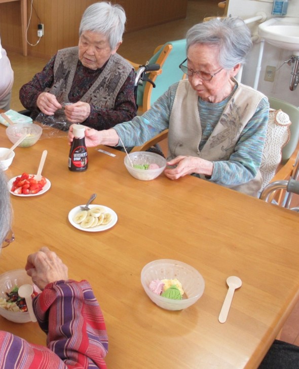 3階はアイスクリームにフルーツとあんこをトッピングして召し上がって頂きました。