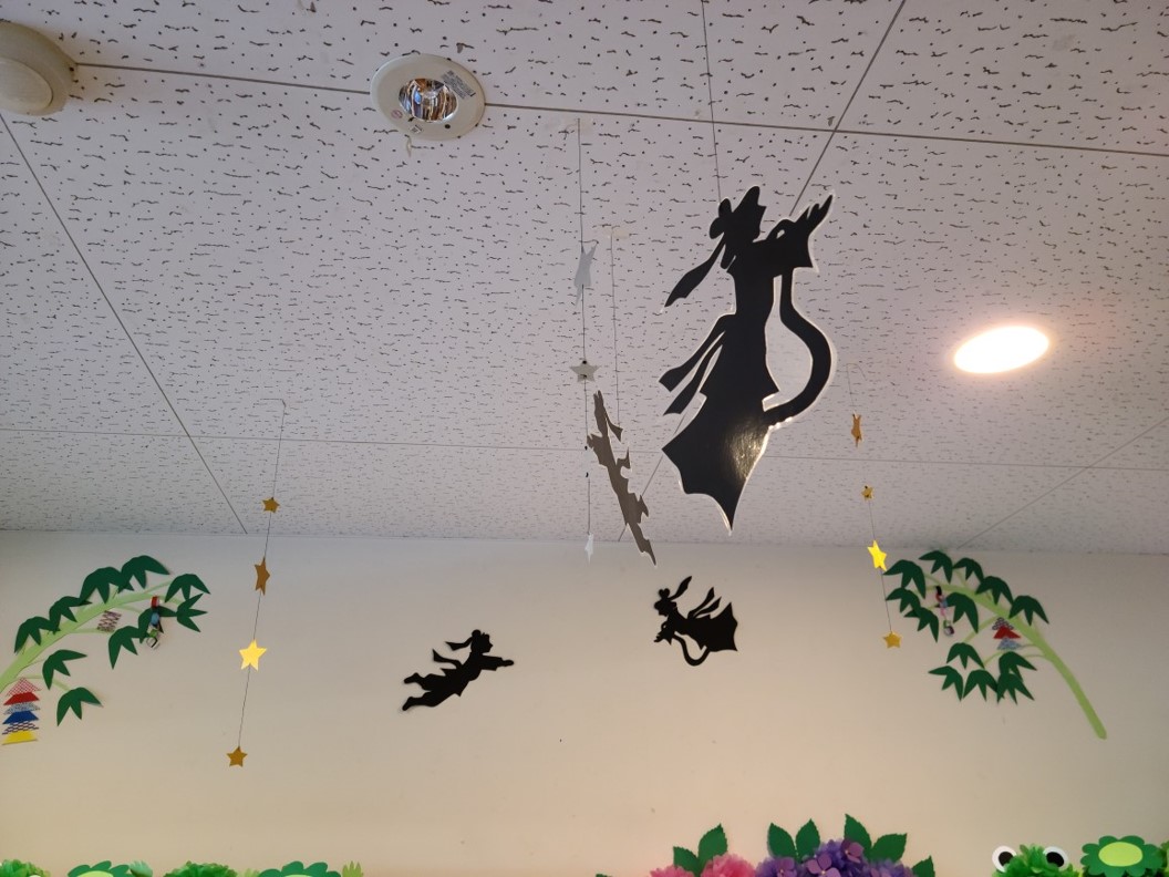 玄関前の飾り付けも七夕仕様に!天井を見上げると織姫と彦星のシルエットがお出迎えしております。