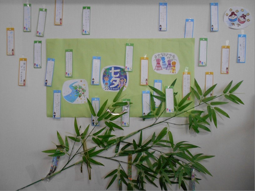 レクリエーションのお時間に皆様で飾りを作ったり、短冊に願い事を書いていただきました。