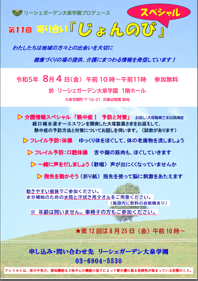 【お知らせ】リーシェガーデン大泉学園プロデュース 寄り合い「じょんのび」スペシャル 2023年8月