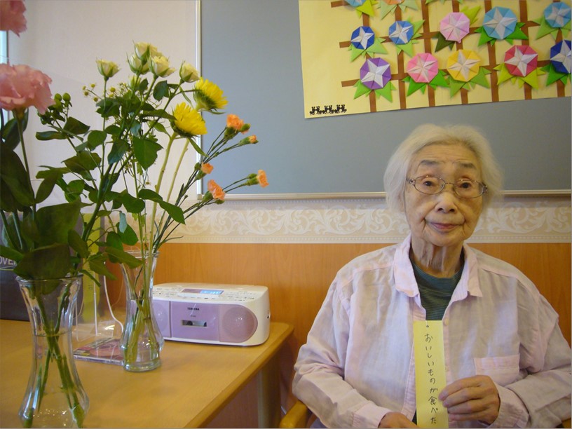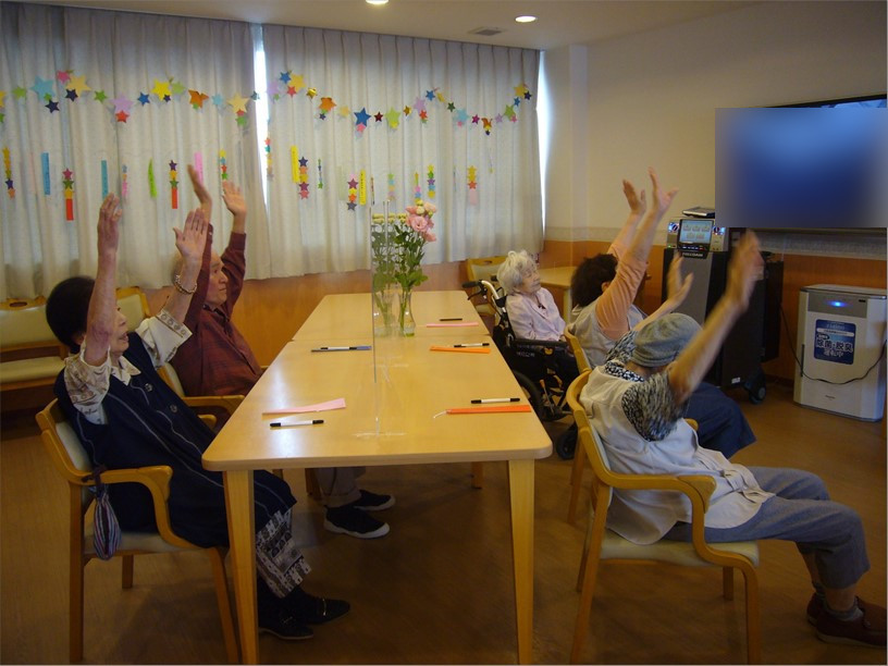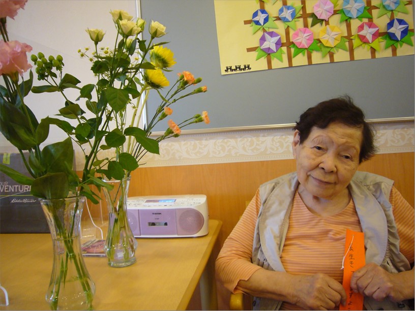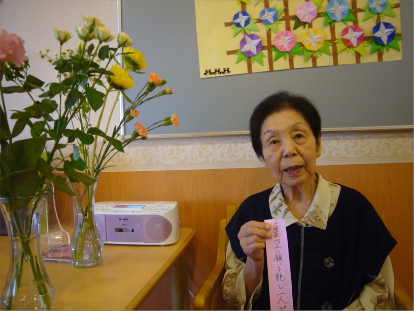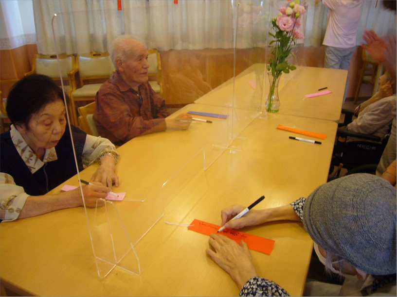 住宅型有料老人ホーム『ハートフルヴィラ出来島』では、7月5日の午後、「七夕」の短冊づくりとお祝いをしました。