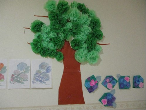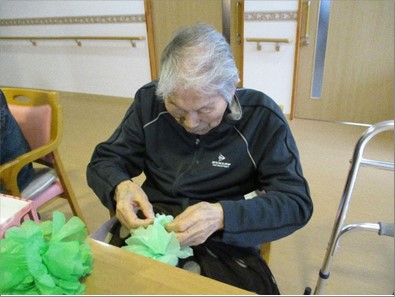 お花紙で新緑の葉っぱをイメージして作成しました。