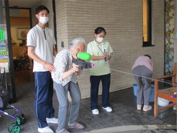 なかなか梅雨明けせず、すっきりしない暑い日が続いていますが、本日は、去年も盛り上がった「水鉄砲的当て大会」を開催しました🎯