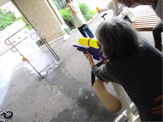 回りにはシャボン玉も。キラキラと綺麗ですねぇ✨