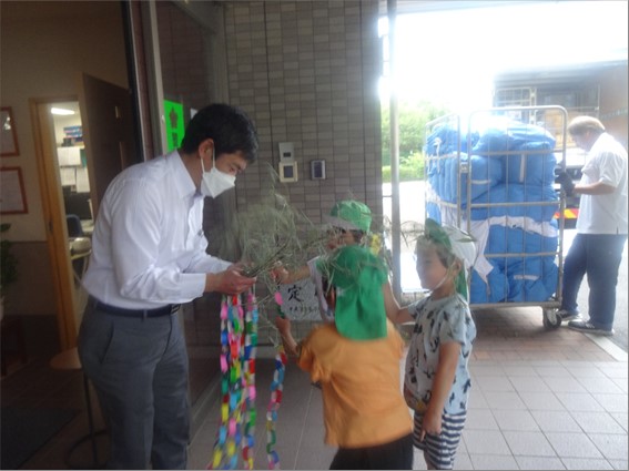 本日は近所の保育園の園児さんが七夕飾りをプレゼントしてくださいました。毎年有難うございます。
