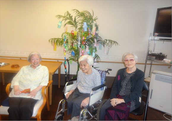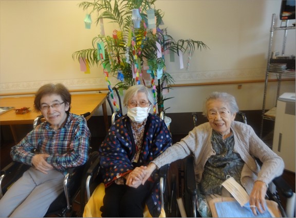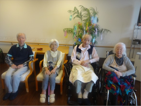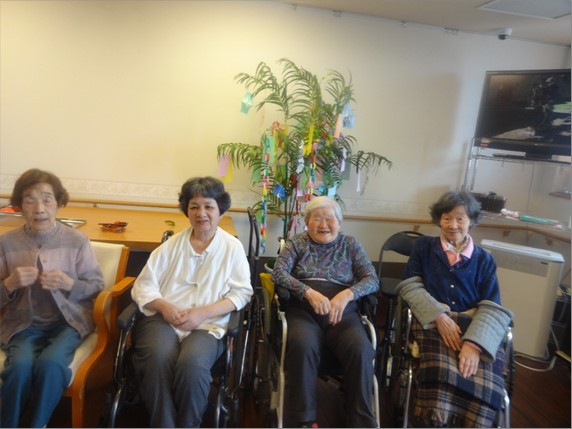 園児さんからいただいた笹の葉に入居者の皆さんに短冊を書いていただいて飾りました。