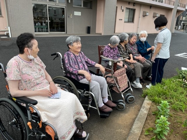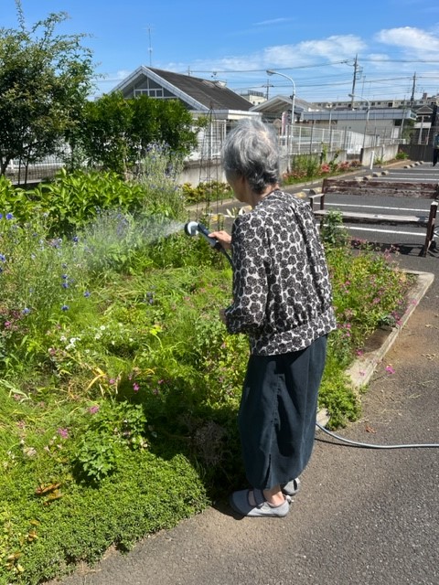 お花にお水を上げてくれる入居者様?