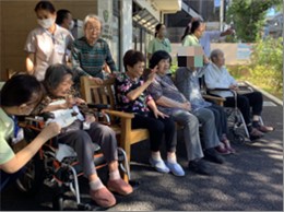 外の気温は36度を超える猛暑日にもかかわらず、巡行決行なのでご入居者様にはできるかぎりお誘いのお声がけをしました。