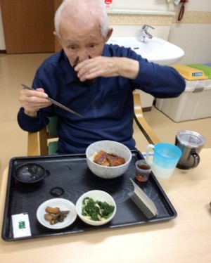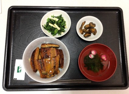 皆が揃う夕食に鰻丼を召し上がっていただきました。