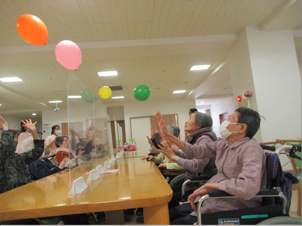 風船バレー!飛沫防止パネルがネット替わりです(笑)