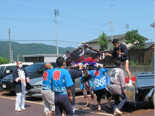 この時期は柏崎でお祭りが行われます。今回は近隣地域の皆さんがお神輿を担いでやってきてくれました!