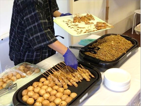 屋台グルメランチのメニューは、焼きそば・焼き鳥・たこ焼き・じゃがバターなどです。