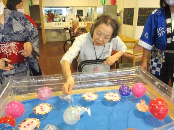 [宝釣り]ではヨーヨーや、商品の書かれたカードを釣り上げます。