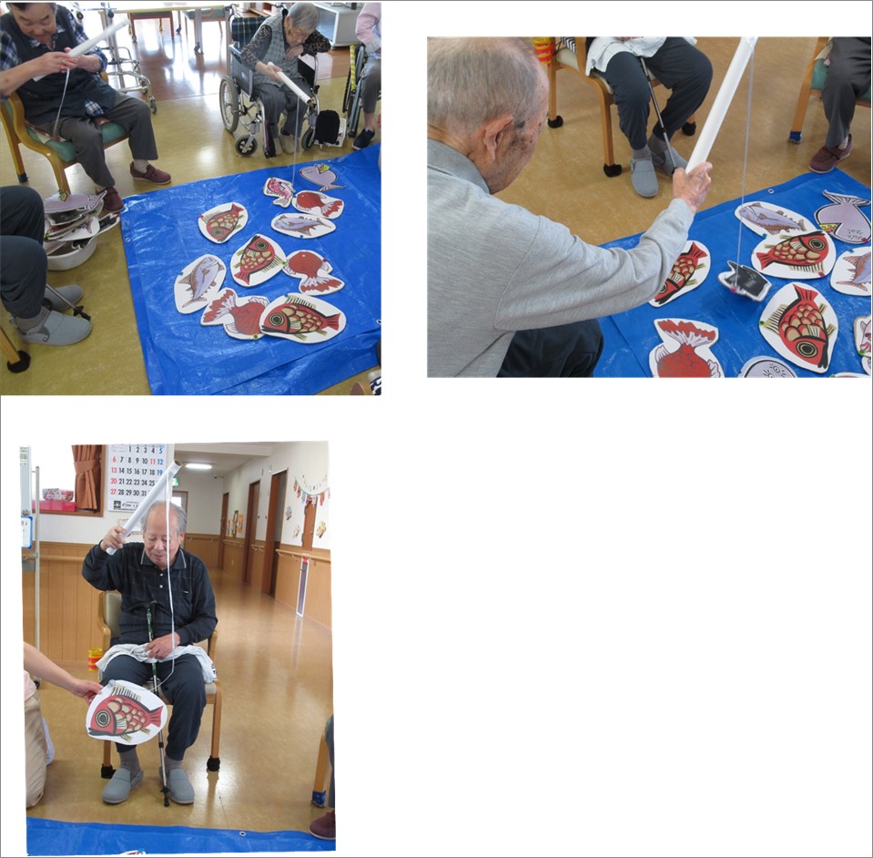 この日は釣り堀を作ってさかな釣りゲームをして楽しんでいただきました。