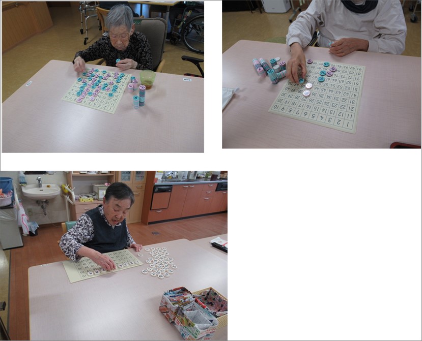 また、空き時間には数字合わせを行っていただいています。数字盤の所に同じ数字をのせていくものです。