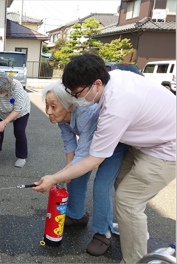 職員と一緒に協力したり、入居者様同士で声を掛け合いながら、万が一に供え実際に体験していただきました。