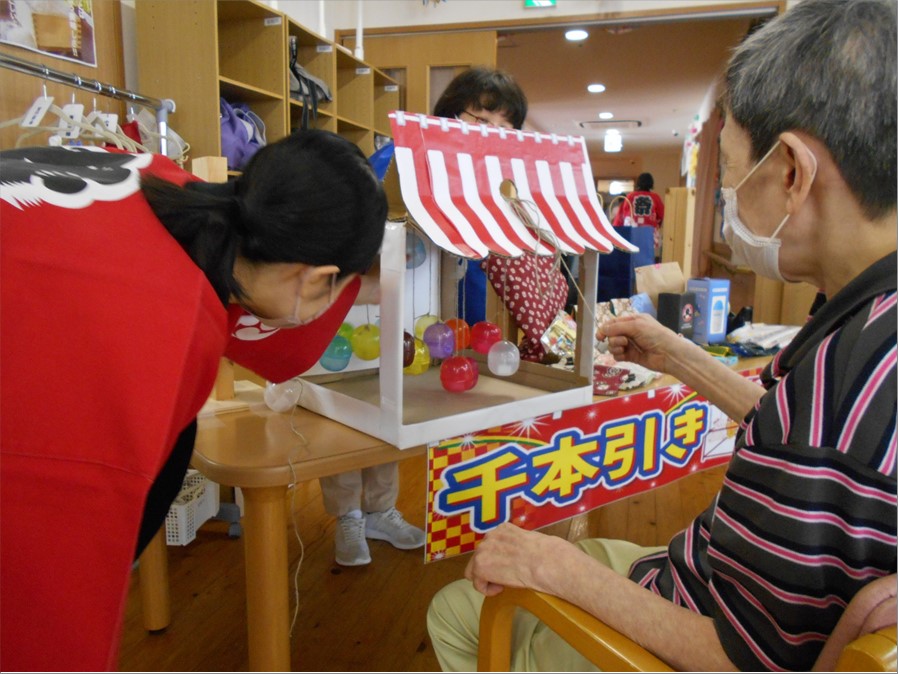 皆様には、千本引き・射的・ヨーヨー釣りの三つの屋台を楽しんで頂きました。
