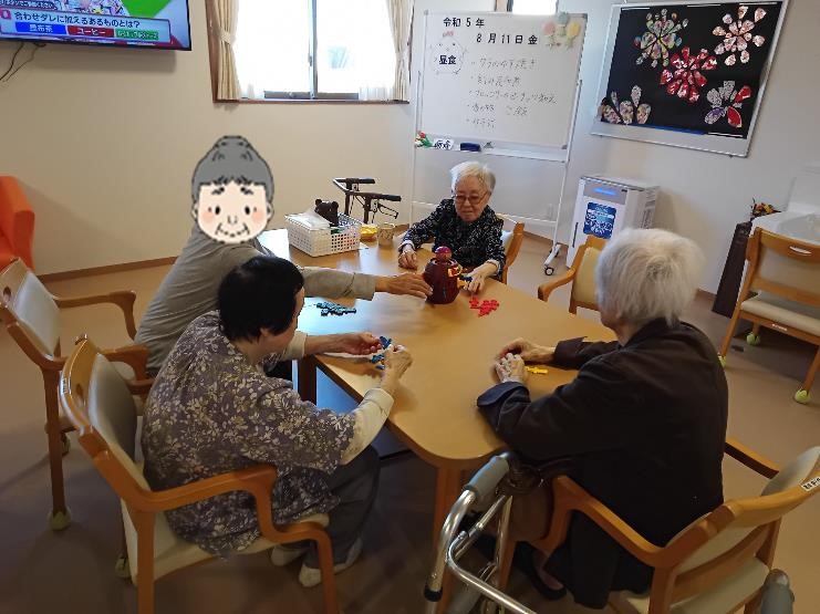他の入居者様が剣を挿す際にはドキドキした様子で見つめていらっしゃいました。