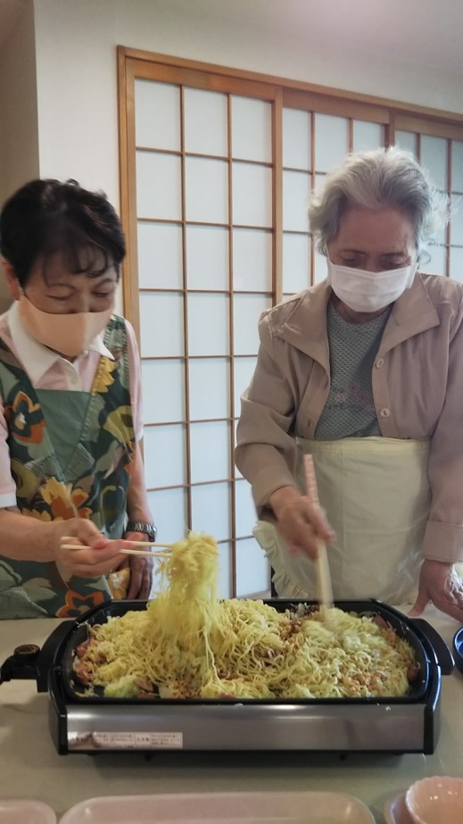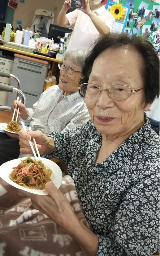 そして最後はやっぱり新通!!!焼きそばとチョコバナナ🍌焼きそばはご利用者様が焼いてくださいました☺