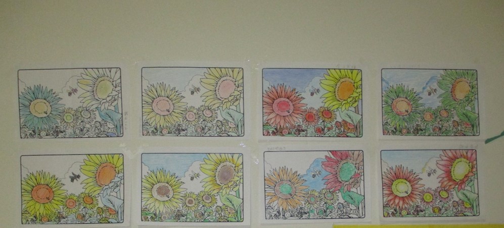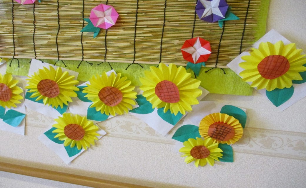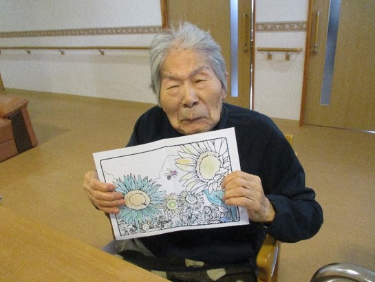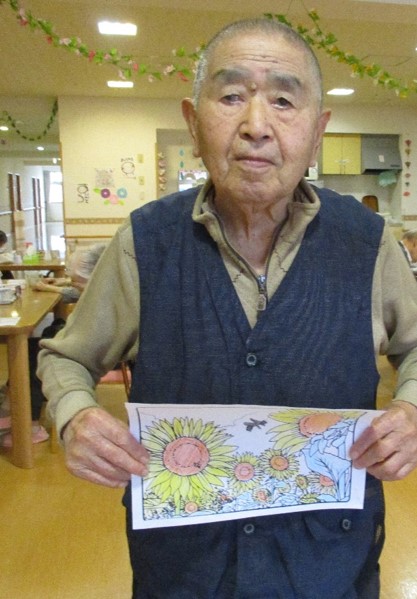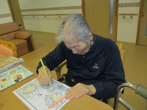 ひまわりの塗り絵や貼り絵に挑戦して頂きました。
