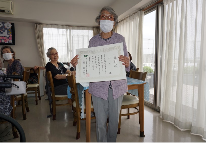 感謝状のあとは長寿を祝福し、古希、喜寿、傘寿、米寿、卒寿の節目の方々に表彰状をお渡しいたしました。