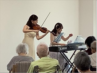 ヴァイオリンの名曲をはじめ、ピアソラのタンゴ、童謡、昭和の歌を演奏してくださいました。