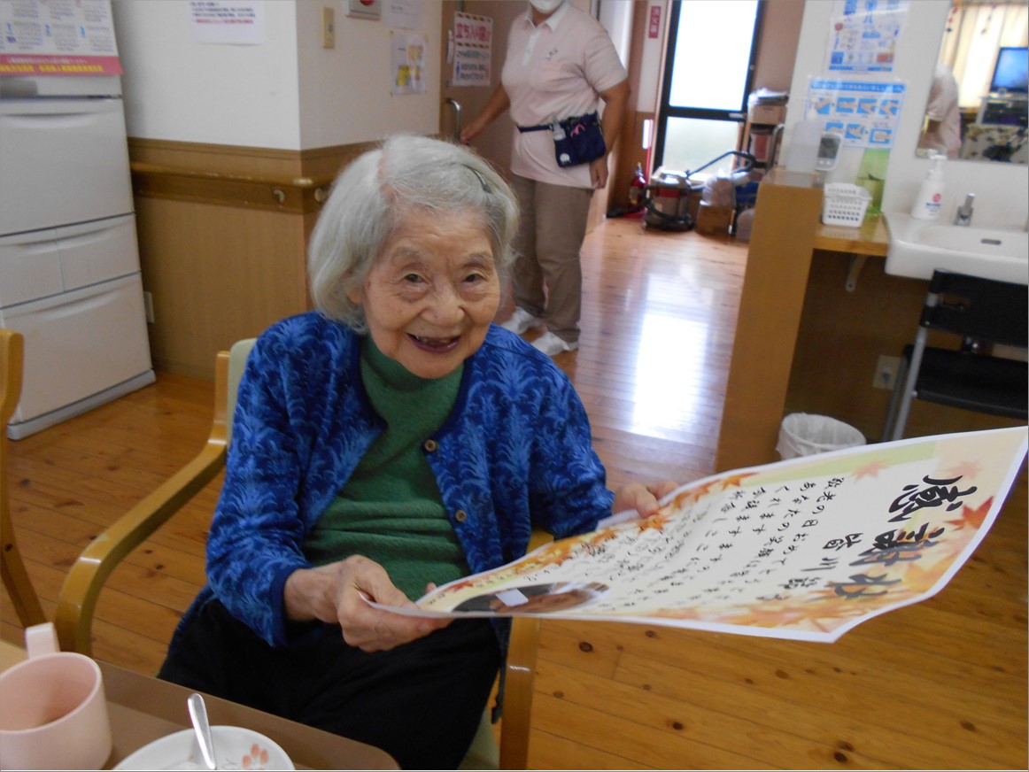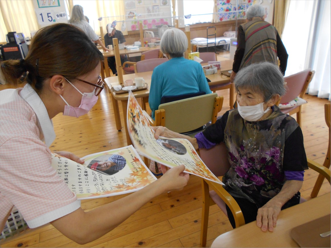 『デイサービスセンター松明』ではご利用者様に感謝状とハンカチのプレゼントをしました。