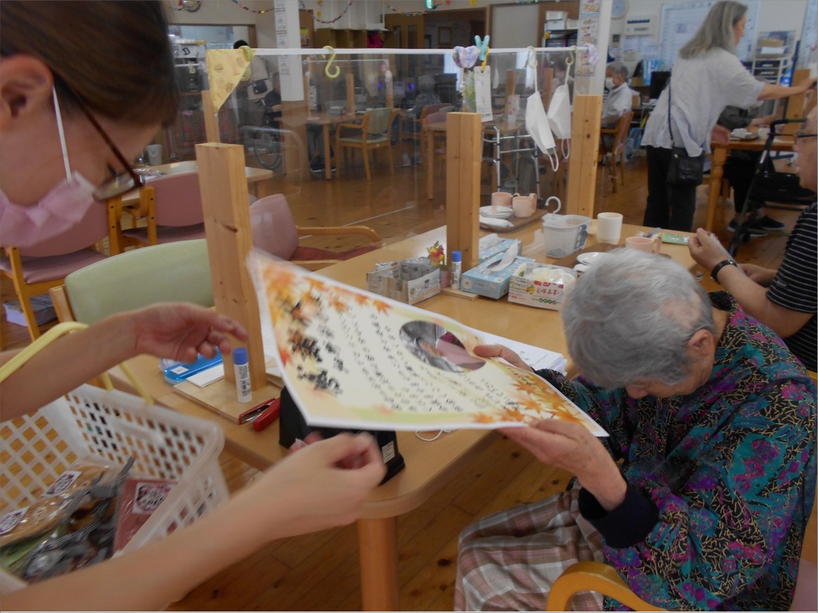 ご利用者様お一人お一人にメッセージを書き、いつまでも健康で来て頂くよう願いながらお渡ししました。