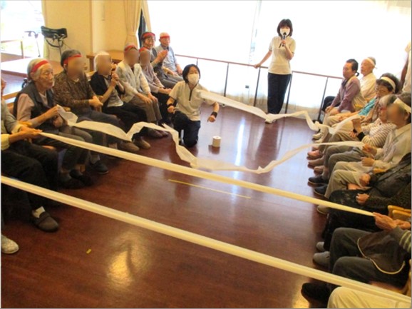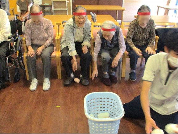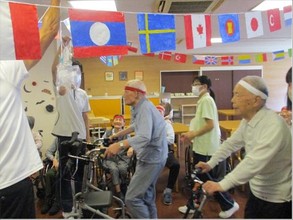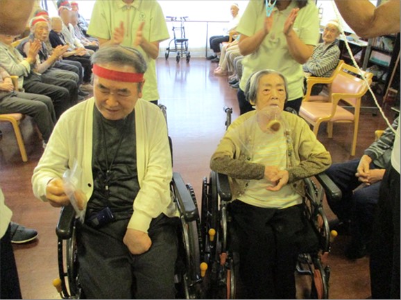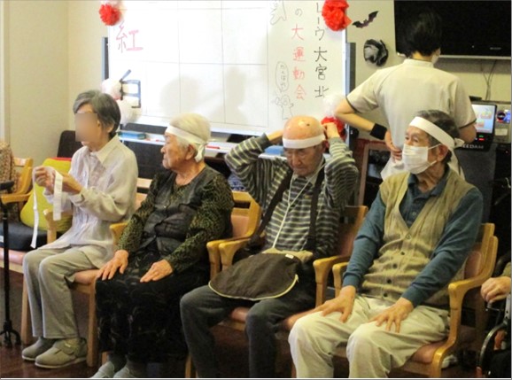 毎年体調不良等で参加できないご入居者様がいらっしゃったのですが、今年は全員参加の運動会を開催することが出来ました。