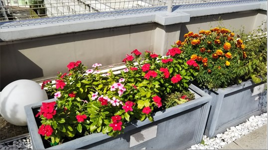 南館7階屋上には、ご入居者様の花壇があります。今夏の猛暑を乗り切り元気に咲いています。