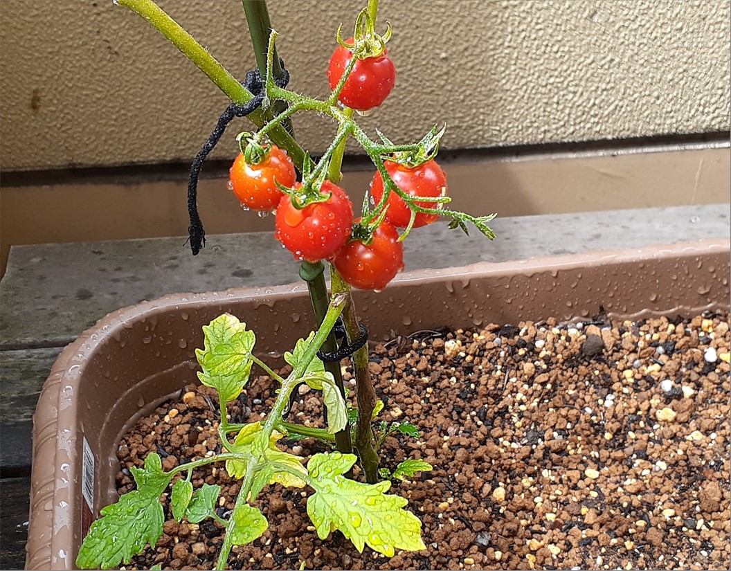 『リーシェガーデン和光(特定施設)』では、先月苗植えをしたベランダのミニトマトがついに真っ赤になりました!