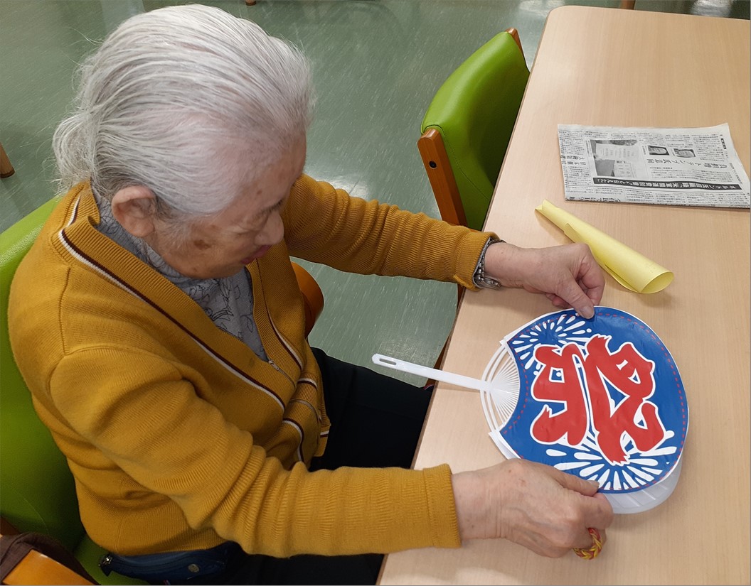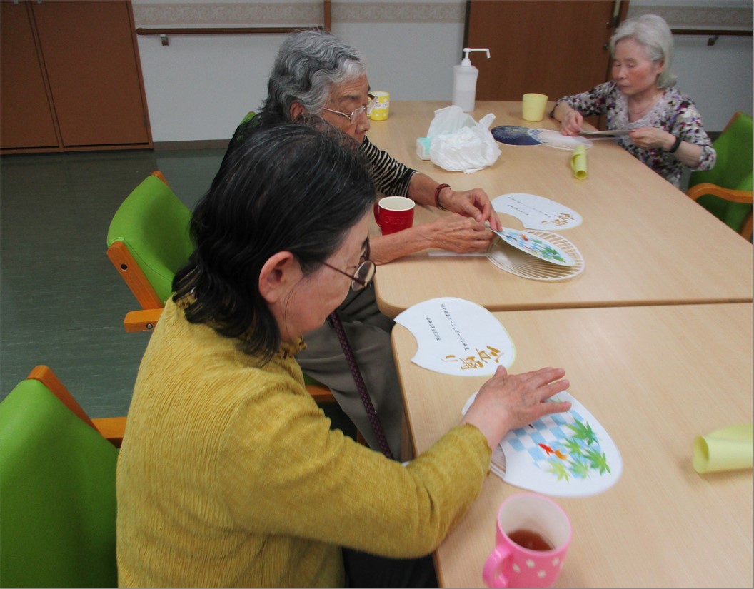 『リーシェガーデン和光(特定施設)』では暑い夏に向けて、ご入居者様たちとうちわを作りました。