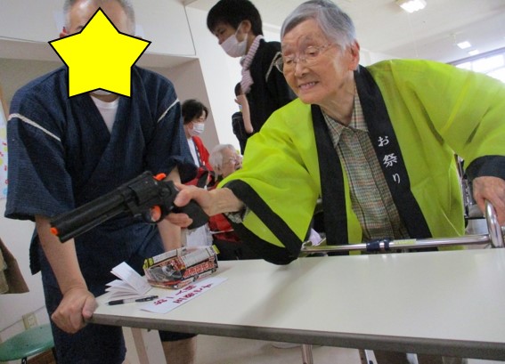 こちらは射的と輪投げです、真剣なご様子で狙いを定めていらっしゃいます。