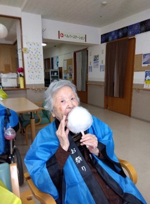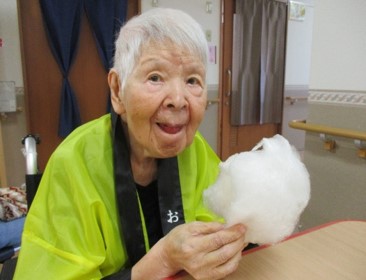 職員がわたあめ屋さんになり目の前でこしらえてお渡しすると、みなさま童心にかえってパクッ☆