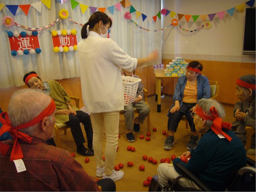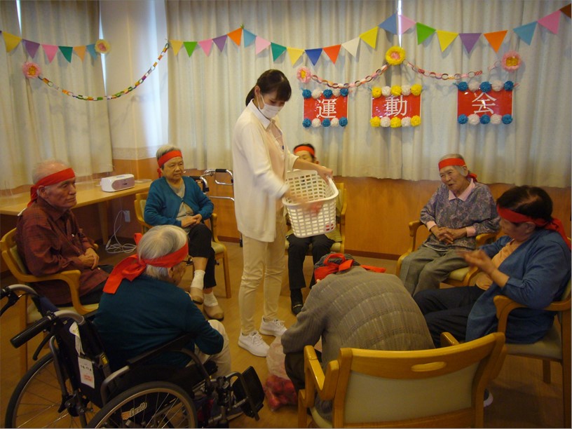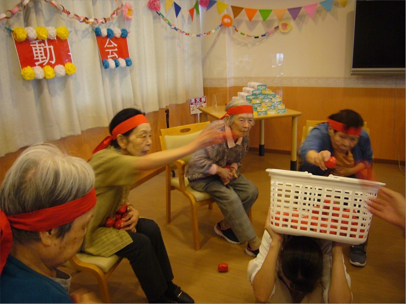 10月9日(月)、「スポーツの日」の午後、住宅型有料老人ホーム『ハートフルヴィラ出来島』では、「ミニ運動会」を開催しました。