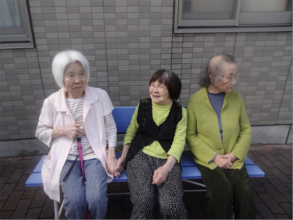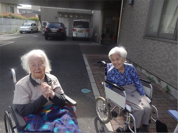 入居者様に少しずつお声掛けして日光浴を楽しんでいただきました。