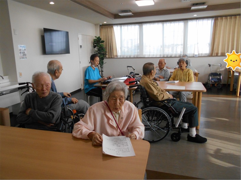 毎日のレクリエーションのお時間に歌を歌ったり、体操をしたり皆様のステキな歌声が響いております。