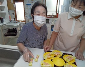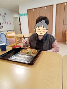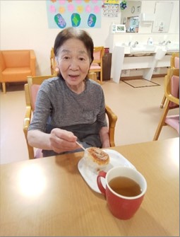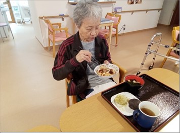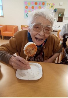 ボリューム満点で「おいしい!凄い沢山だね!満足、満足!」といったお声があがりました。他にもお職員による手作りお好み焼きやおはぎ、五平餅を召し上がっていただきました。