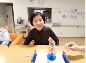 日常のご様子です。レクリエーションで笑顔があふれているご様子とお手伝いをして下さっているご様子です(^^♪