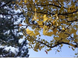 山の下市場から『スミール新潟東』へ続く一本道に植えられている街路樹が、秋晴れの空にとても良く映える赤や黄色に色付いてきました。