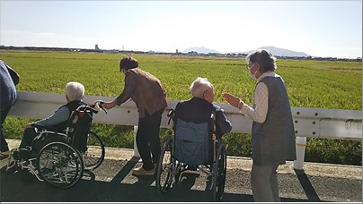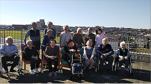 デイサービスは一階ではありますが、防災訓練も兼ねて、エレベーターを使って屋上へと皆さんと出てみました。
