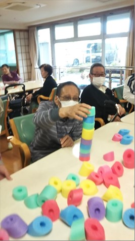 室内では芸術の秋、指先を使う作業レクや、集中力を必要とするタワー作り、クッキングレクリエーションも行っております。
