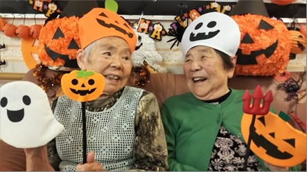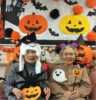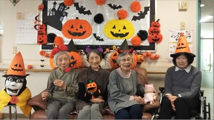 10月最後のイベント、ハロウィンの仮装大会🎃大きなかぼちゃのディスプレイはご利用者様の作品ですが、気持ち悪い人形は職員の趣味です…。気持ち悪いと大評判でした笑笑