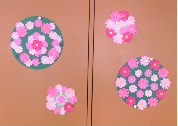 色とりどりの秋桜で飾ったリースを壁面飾りにしたところ『私のお部屋にも彩りが欲しいわ。』と希望される方がいらっしゃり、プレゼントしたところ大変喜んで頂けました。