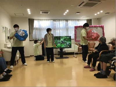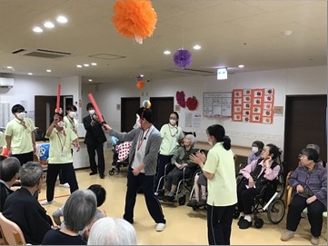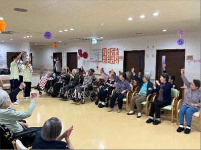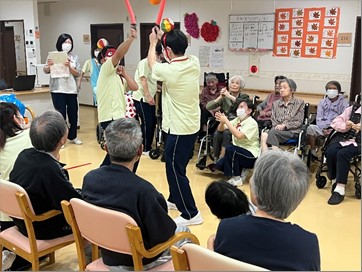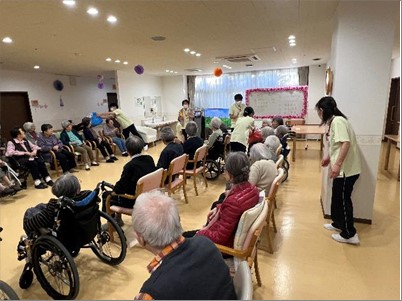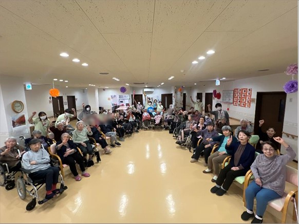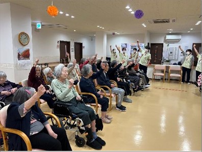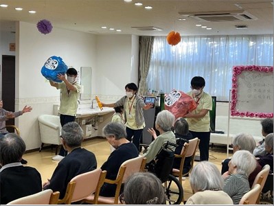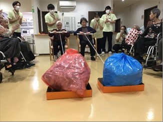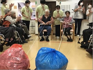 今年の運動会も無事に終了しました。久し振りの2F・3F合同での開催でしたが職員も入居者様も笑顔が絶えない時間でした。