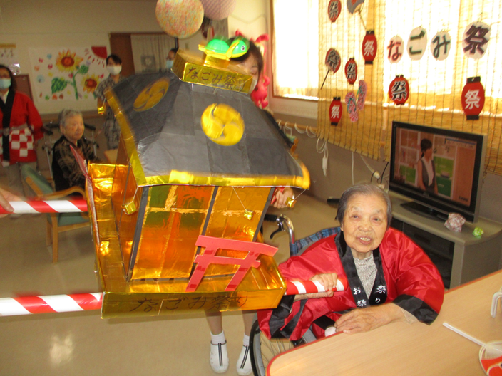 今年はコロナ禍でたくさんの行事が中止となり、地域での夏祭りや花火などもありませんでしたが、『ハートフルケア亀田向陽』と『グループホームおやの家』ではご入居者様に夏らしく楽しい一日を過ごして頂こうと、去る8/28(金)に『なごみ祭り2020』を開催しました!