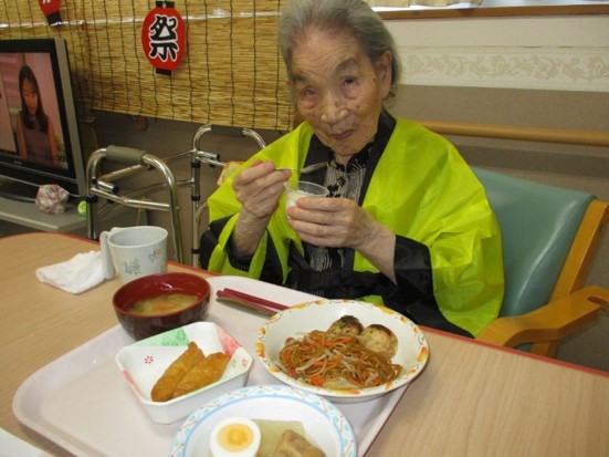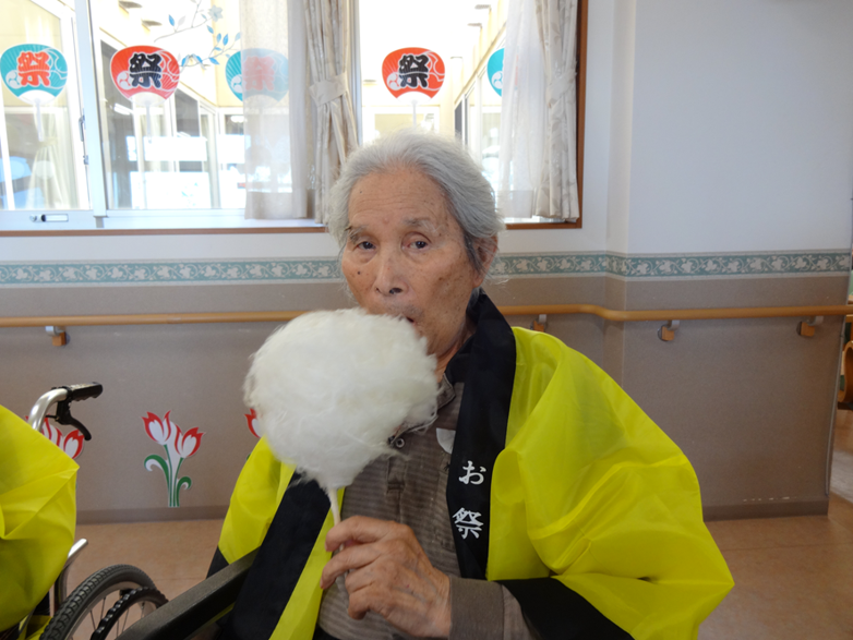 昼食は、「焼きそば」や「たこ焼き」、「いなり寿司」や「おでん」など、デザートには「カキ氷」や「スイカ」、「わたあめ」など、祭りらしいメニューをご提供しました。